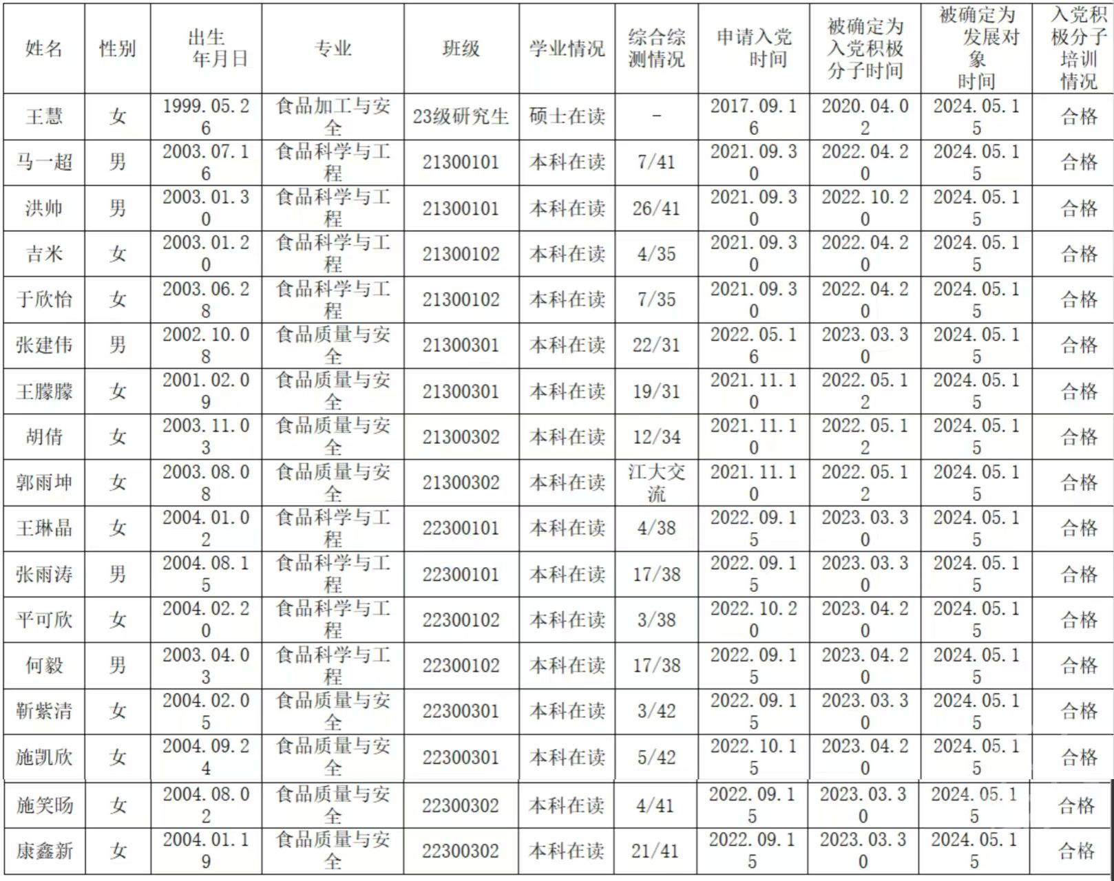 党的发展对象公示表