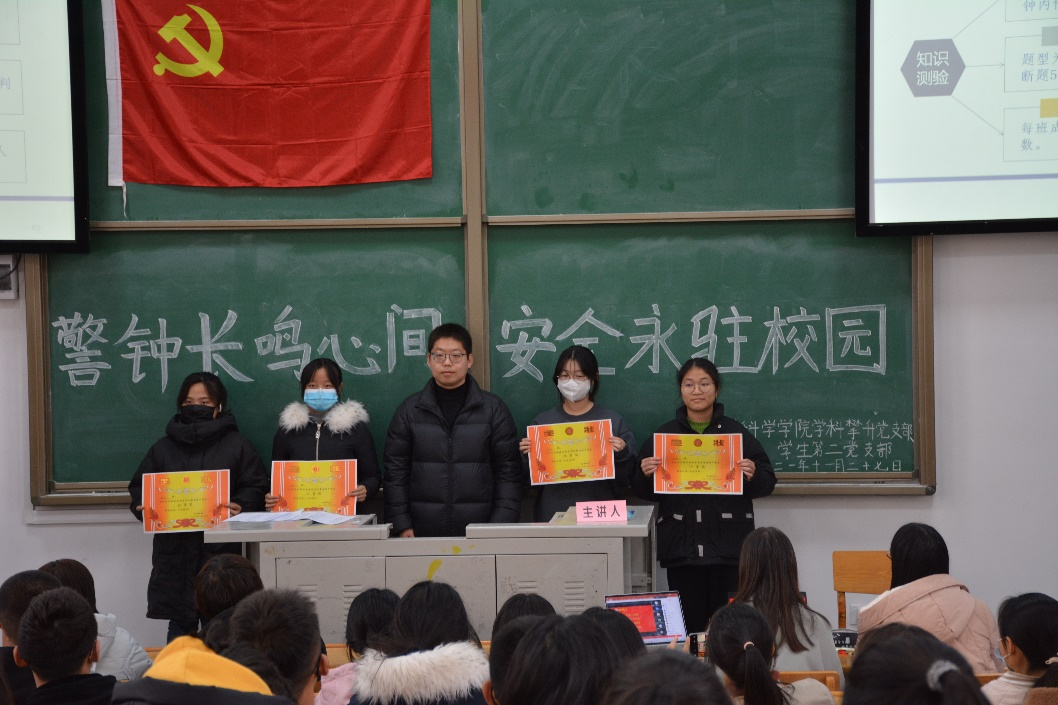 此次活动由两部分组成,第一部分,以知促行——实验室安全知识讲座;第二部分,以行促知——体验式实验室安全教育。实验室安全知识讲座在北校区3号楼东阶梯教室由闫帅帅老师讲解,讲座以有关实验室安全的热点视频作为切入点,阐明了实验室安全教育开展的重要性及必要性。随后,老师从常用标识、试剂安全、设备安全等方面为同学们初步建立了实验室基本安全知识框架。之后,由员工党员带领21级同学进行“大家来找茬”——实验室安全卫生隐患检查、实验室安全知识测验两个环节,在活动中,同学们积极参与、主动思考、踊跃答题,场面热烈。最后,两轮比拼结束后,由主持人宣读比赛结果,一等奖:2103班;二等奖:2102班;三等奖:2101班;优秀奖:2104班。