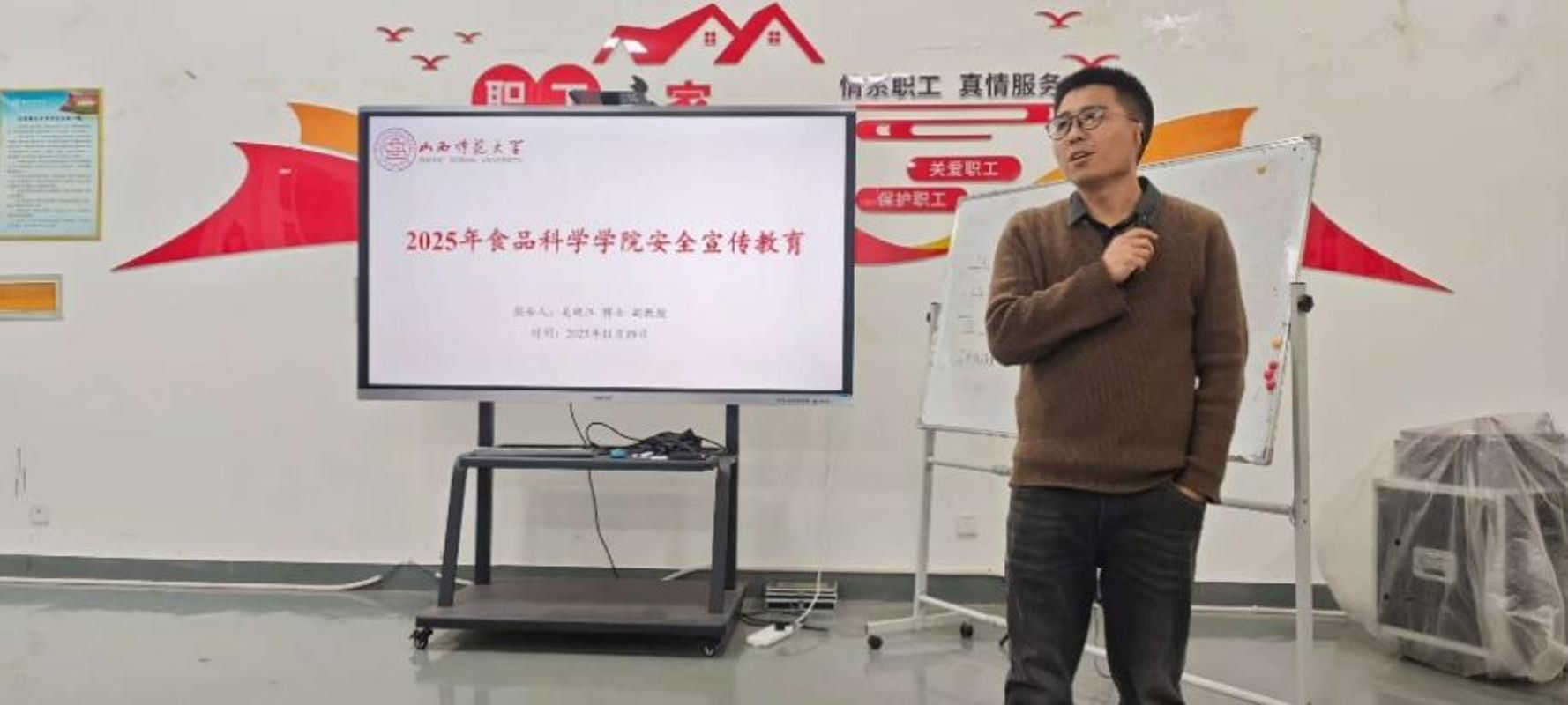 11月19日,学院面向员工组织举办了一场系统全面的实验室安全培训活动。本次培训旨在进一步增强员工的安全意识,普及安全知识,提升应对突发事件的处置能力,确保教学科研工作的安全有序进行。培训内容详实,覆盖广泛,主要围绕实验室安全、生活安全与消防安全三大核心板块展开。本次培训工作由吴晓江老师负责主讲。