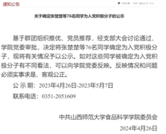 (二)推荐2024年第1批入党积极分子培训班学员名单。